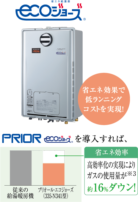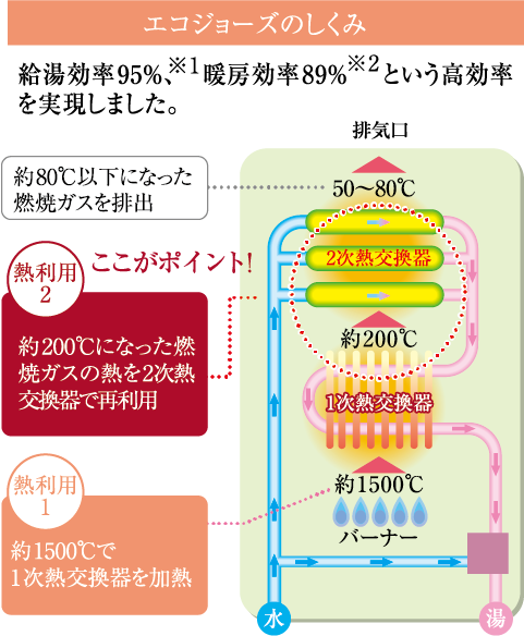 ※3 従来品80%、エコジョーズ95%の給湯効率にて給湯用ガス使用量を試算。